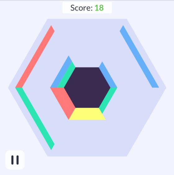 Hexatrion. Un juego de ir formando filas de al menos tres piezas del mismo color sobre un hexágono. Gamee, la desarrolladora de estos juegos, lo vende en Twitter diciendo que la música es muy bonita y relajante. Pues eso.