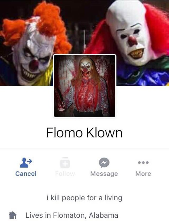 Las máscaras utilizadas por DM Pranks (una de ellas es de Pennywise, el payaso de la película It) eran también las elegidas por Flomo Klown para ilustrar la portada de su página de Facebook.