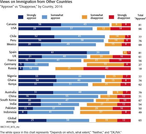 El 61 por ciento de los ciudadanos británicos aprueban la inmigración desde otros países, según esta misma encuesta.