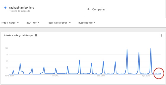 En España también hay un ejemplo: Raphael. Los villancicos del músico no tienen estadísticas en YouTube, pero en Google Trends –la herramienta de Google para analizar tendencias en búsquedas– su clásico El tamborilero también repunta. Ya puedes ir sacando la fruta escarchada.