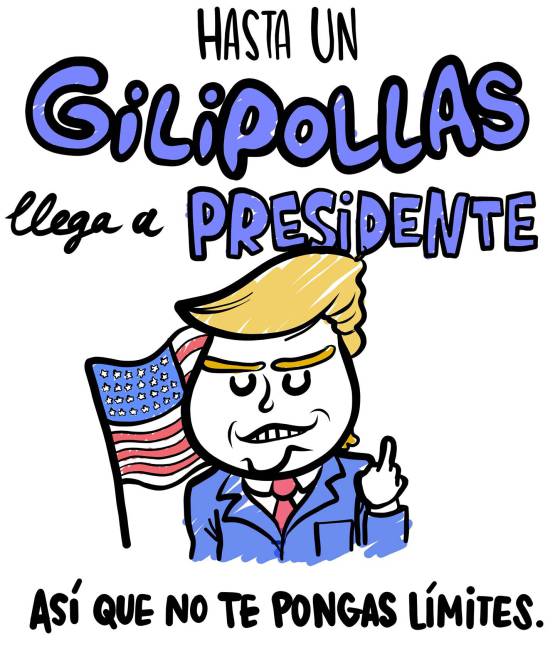 Su obra se ha convertido en libro 80 viñetas después. Algunos de los dibujos de No molas tanto como crees están inspirados en sus publicaciones de Facebook, “aunque la mayoría son originales”. “En el libro quería profundizar, que las viñetas estuvieran agrupadas y hubiera un hilo narrativo. En Facebook sí he ido publicando los dibujos según se me iban ocurriendo. Era más cuestión de instinto”, indica. Así nació su publicación más compartida (21.000 veces), un chiste sobre Trump en el mismo día que fue elegido presidente de Estados Unidos.
