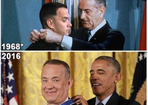 Esta misma semana Tom Hanks imitó, aunque sin pretenderlo, otra icónica escena, en este caso protagonizada por él mismo: en la que el presidente de los Estados Unidos lo condecora en Forrest Gump.