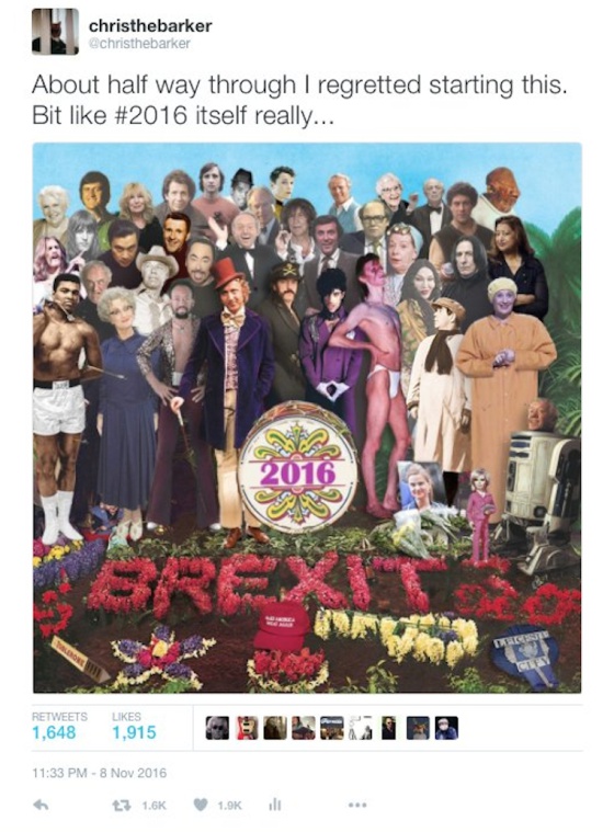Here's the last image of the year and the list of those who are on it. Here's hoping next year isn't such a harsh one. #sgtpepper2016 #HNY pic.twitter.com/7BlO7xCvXe