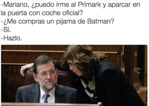 A Esperanza Aguirre le han preguntado su opinión sobre el episodio del pasado 12 de diciembre, cuando la vicepresidenta del Gobierno, Soraya Sáenz de Santamaría, aparcó su coche oficial en la Gran Vía de Madrid frente a un Primark. En la cadena 13TV la portavoz del Partido Popular (PP) declaró que "dado que los sueldos de los políticos, a pesar de lo que dice mucha gente, no dan para mucho, tiene muy buenos precios Primark, como los tiene Zara y estas low cost a las que tu llamas despectivamente; y es a donde podemos ir los que tenemos un sueldo... ¿eh?".