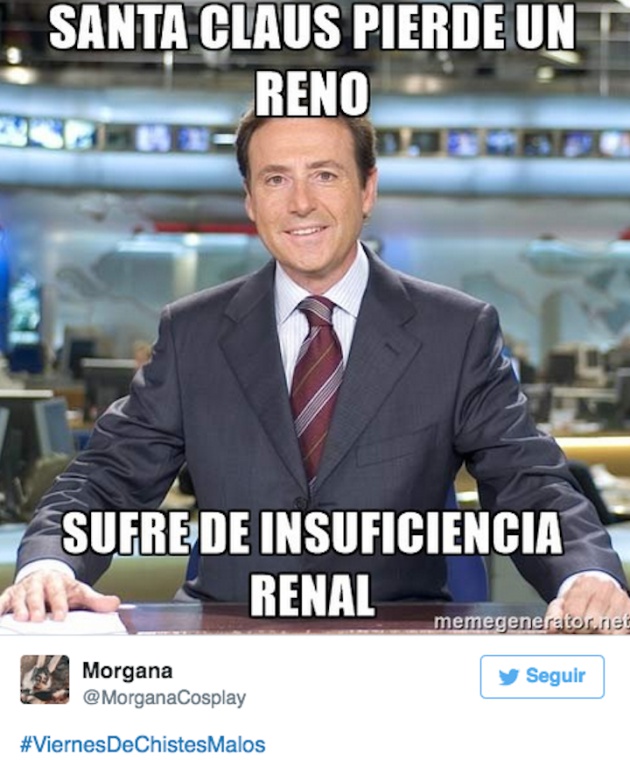 Ya se sabe que en la cenas navideñas es mejor no hablar de fútbol, religión o política. Por si a algún familiar se le ocurre, y antes de que se caliente la cosa, se puede recurrir a un chiste malo que relaje la situación. La etiqueta #viernesdechistesmalos se ha convertido en trending topic nacional en Twitter y, como indica su nombre, recopila bromas no muy afortunadas.