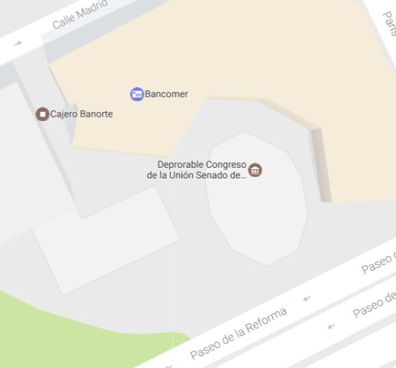 Los nombres modificados de la Cámara de Diputados y El Senado aún aparecían en Google Maps alrededor de la una de la tarde (horario de la Ciudad de México). El del Senado se ve únicamente si se busca directamente con el apodo. Si el usuario busca por el nombre real, el modificado no aparece. Para las 5.45 de la tarde, todos las modificaciones habían sido borradas de la plataforma.