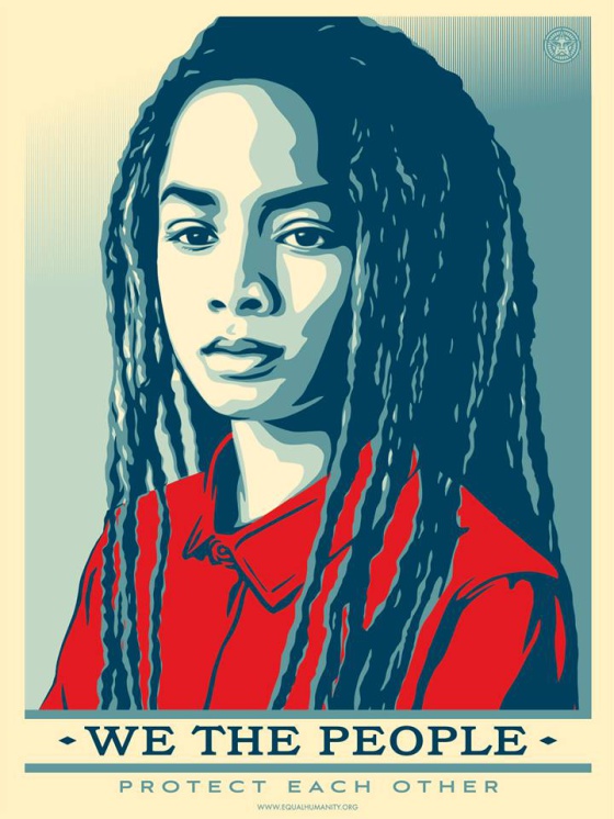 Fairey trabaja en esta ocasión en equipo con Amplifier Foundation, una organización que impulsa la colaboración entre artistas y movimientos civiles para que su mensaje llegue a más gente. Además del conocido artista urbano, en el proyecto We the People participan también los artistas Ernesto Yerena, nacido en California de origen mexicano, y Jessica Sabogal, colombiana y estadounidense, que han creado estas imágenes.