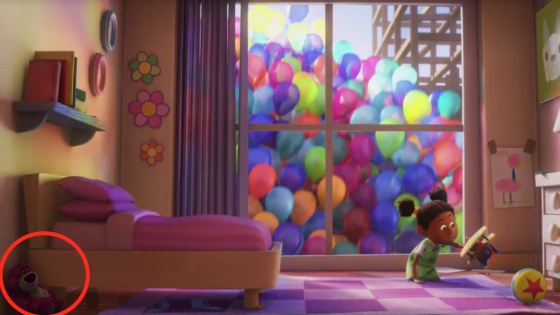 El peluche malvado de Lotso, de Toy Story 3, está en la habitación de una niña en Up: