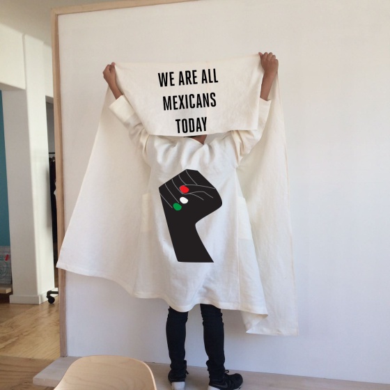 De acuerdo con la diseñadora, en las comunidades indígenas un huipil es un libro abierto y su nueva línea busca tener esa misma función. “Estamos usándolas de la misma manera en la que se lee un textil mexicano por su comunidad. Queremos decir cosas a través de ellas”, dice. “ Es importante entender que al final del día como buenos mexicanos sobrevivimos a todo, pero también hay que hablar. No debemos dejar que nos sigan dando en la madre en ruedas de prensa, tuits y discursos. También nosotros tenemos algo que decir”.