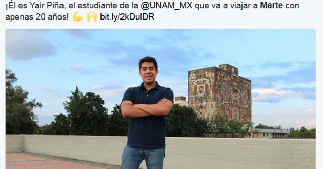 Desde las primeras horas del 13 de febrero hasta después de medio día, la palabra Marte ha sido tendencia en Twitter en México. Varios medios nacionales han compartido la noticia sobre un estudiante mexicano que llegará a Marte y cientos de tuiteros la han replicado pensando que Yair Piña visitará el planeta, pero esto es falso. La realidad es que el estudiante de sexto semestre de la UNAM, viajará a Utah (Estados Unidos) a la estación de investigación marciana The Mars Desert Research Station (MDRS). El hecho de que algunos medios hayan titulado que viajará a Marte o que llegará a Marte sin utilizar las comillas correspondientes ha propiciado la confusión.