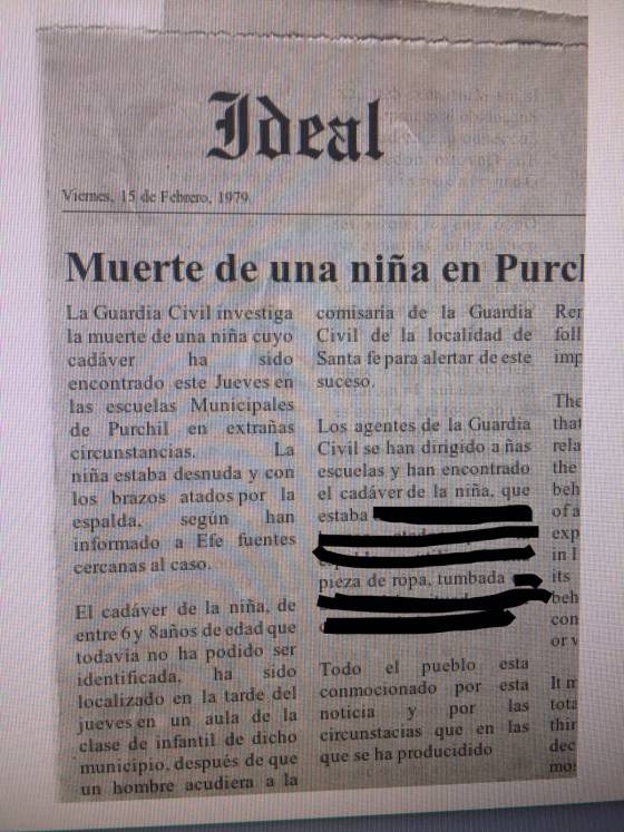 El periódico Ideal confirma a Verne la falsedad de la noticia, fechada en un viernes, a pesar de que el 15 de febrero de 1979 cayó en jueves. Además, se distinguen palabras en inglés a la derecha de la imagen. La portavoz del PP en el Ayuntamiento, Mari Carmen Ros, ha recibido el bulo. “Por entonces tenía 13 años y estudiaba en ese colegio. Eso no pasó. Yo soy de Vegas del Genil de toda la vida, llevo un montón de años en el consistorio y nunca se ha hablado de fantasmas hasta ahora”, dice a Verne por teléfono.