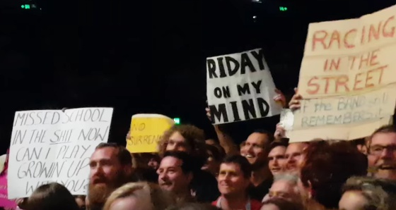 Muchos eran los seguidores que portaban carteles con mensajes para el músico en las primeras filas de este concierto australiano, pero Testa llamó la atención de Springsteen con una enorme pancarta que decía "No he ido a clase y estoy en la mierda ahora mismo. ¿Puedo tocar Growing Up contigo?".