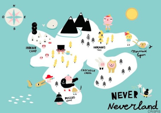 Algo más cerca, en Madrid, Maria Ramos y Cinta Arribas conforman la mitad más creativa de estudio Crispis. Entre otros muchos proyectos, las dos ilustradoras crean mapas que transitan los terrenos abstractos de la imaginación en vez de la realidad geográfica.