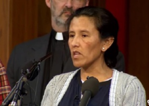 La nota dice: “Gracias. Supe que eras América desde que te vi, pero no quise llamar la atención. Gracias por tu discurso en Washington. Mis padres son inmigrantes”. Abajo puedes ver la intervención de Ferrera en la Marcha de la Mujer que se realizó en Washington el 21 de enero.