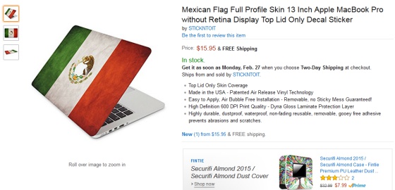 De acuerdo con los criterios legales, estos 19 productos de venta a través de Amazon tendrían problemas con los inspectores de los símbolos patrios si se vendieran en el país. Amazon no los vende directamente, sino que solo provee su plataforma a otras tiendas en Estados Unidos para comercializarlas. Amazon solo puede envíar a México la cobertura para laptop, los shorts, el reloj y el ventilador de techo. El resto son productos exclusivos para EE UU. Ninguno está disponible en la tienda mexicana de Amazon.