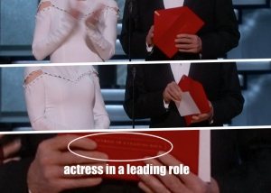 Todo esto es, por supuesto, ficción y tiene una explicación menos maquiavélica: todos los sobres se encuentran por duplicado a cada lado del escenario para que, entre por donde entre el responsable de anunciar el premio, tenga una tarjeta a su disposición. DiCaprio cogió el del lado en el que se encontraba Martha L. Ruiz, de la empresa encargada de gestionar los sobres. Sin embargo, la tarjeta que produjo el malentendido, según detalla el diario The New York Times, se entregó en el otro lado y no en el de Ruiz.