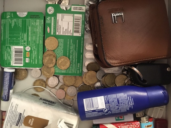 Nosotros escarbamos en los cajones de la oficina, buscamos debajo de los muebles y rescatamos unas 120 monedas de distintas denominaciones, la más alta de un peso y la más baja de 10 centavos, la mayoría eran de 50 centavos.