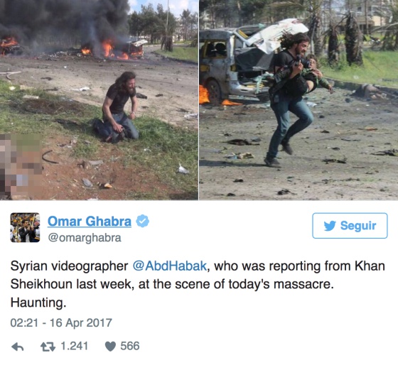 "Lo que mis colegas y yo hemos hecho hoy es inspirar humanidad a los que fueron socios para matar a los niños de Khan Sheikhoun", comenta el protagonista de estas imágenes a través de su perfil de Twitter, haciendo referencia al ataque con armas químicas de principios de abril del que también fue testigo.