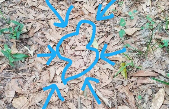 Otro tuitero compartió una foto con y sin zoom de una serpiente similar, como prueba de lo eficaz que es su camuflaje.