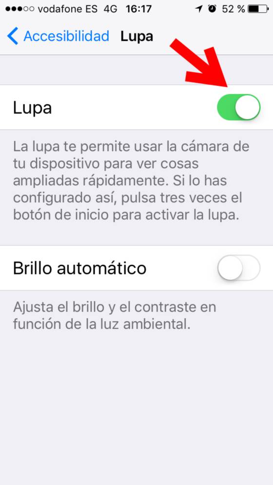 Llegados a este menú, se puede activar la opción de lupa.