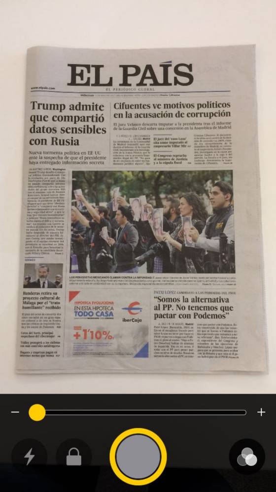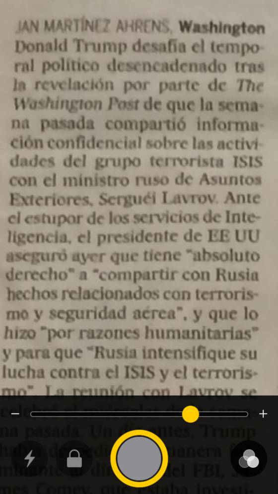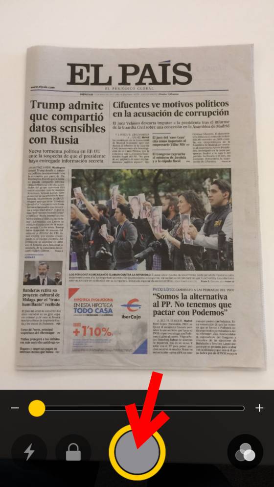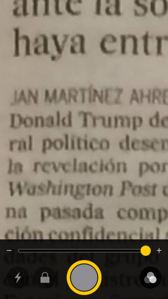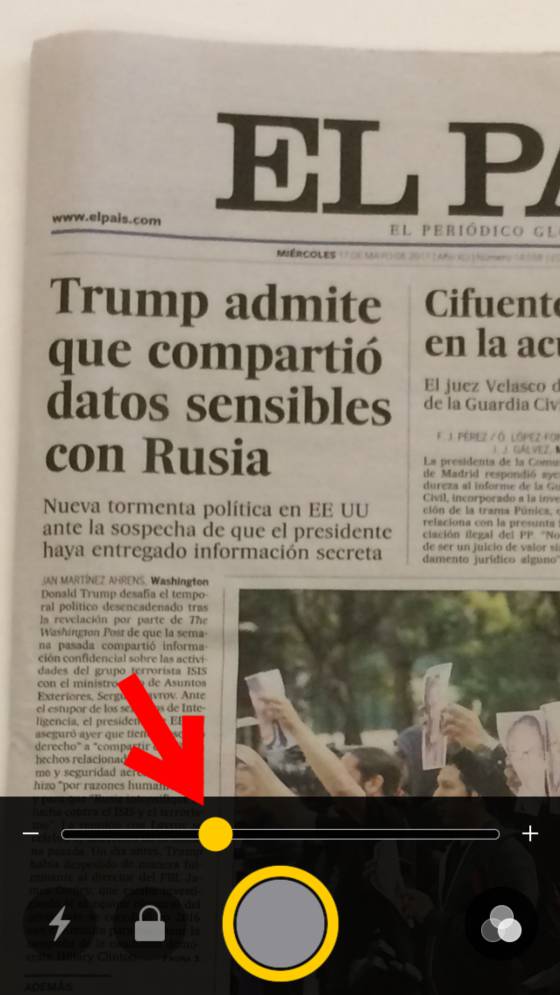 Ya has llegado a la lupa. De momento no toques la barra que te permite acercar la imagen. Limítate a pinchar en el botón circular para hacer una fotografía general de lo que quieres ampliar (la imagen no se guardará en la galería).