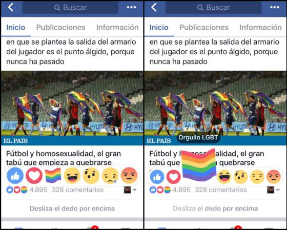 Junio es el mes del Orgullo LGTB+, en el que la diversidad afectivo-sexual se celebra y se reivindica en muchos países del mundo. Facebook se suma al Orgullo con un nuevo botón de reacción a las publicaciones. Ahora, además de reaccionar con me gusta, me encanta, me enfada, me asombra, me entristece y me divierte, se puede hacer con un Orgullo LGBT, ilustrado con la bandera arcoíris.