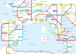 En este mapa del Metro de Madrid solo hay una parada que conserva su nombre real, Chueca. Pincha en la imagen para ampliarla.