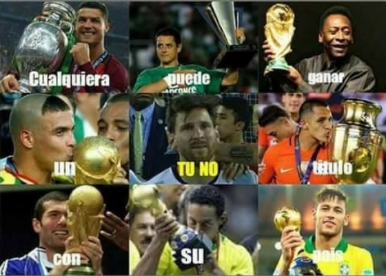 El delantero del Barça es uno de los mejores jugadores del mundo, pero sus atributos no han sido suficientes para ganar un título con la selección de su país. Después de perder la Copa América contra Chile, Messi dijo que abandonaba el equipo albiceleste por la frustración de perder cuatro finales. Los hinchas argentinos respiraron aliviados cuando el astro anunció su regreso.