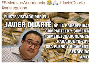 En Twitter, la frase ha inspirado a decenas de usuarios a hacer bromas sobre el político mexicano, quien será extraditado a México. Duarte ya había sido objeto de burlas por otra frase: “Sí merezco abundancia”, escrita varias veces en un cuaderno encontrado en una bodega llena de pertenencias de la familia del político.