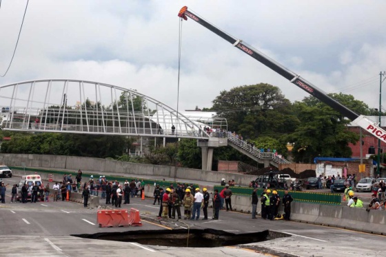 Un inmenso socavón se formó en la autopista Paso Exprés en Cuernavaca (Morelos) este miércoles, lo que ocasionó el fallecimiento de dos automovilistas. Las fuertes lluvias erosionaron una alcantarilla, afectada por el exceso de basura, lo que provocó el hundimiento de la carretera, según informó la Secretaría de Comunicaciones y Transportes (SCT).