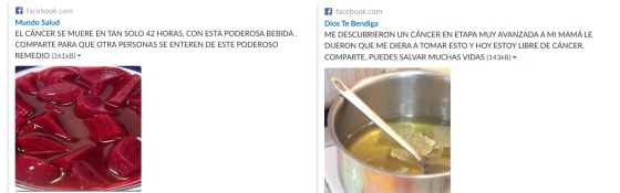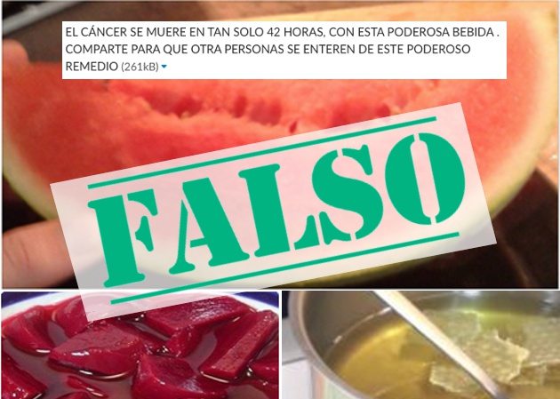 Muchas de estas cadenas, según hemos comprobado, están relacionadas con el cáncer, ya sea con alimentos que lo producen o con sustancias que lo curan. Ya hemos desmentido los bulos de que unos pintalabios, unas sandías agrietadas y unos cosméticos producían cáncer. Y también nos han llegado bulos sobre las supuestas propiedades curativas de productos como el zumo de remolacha o la guanábana: