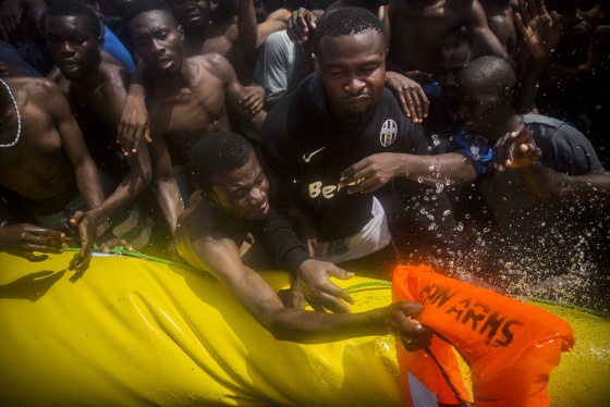 El fotoperiodista Santi Palacios (Madrid, 1985) está acostumbrado a fotografiar el horror. Y esta es una instantánea que horroriza y que no pasa desapercibida entre las demás. Algunos estaban medio desnudos. Después supimos que en la embarcación, que viajaba a la deriva, había 167 supervivientes. Trece personas fallecieron y entre ellas había dos mujeres embarazadas. En declaraciones a la Cadena Ser, Santi Palacios describía escenas desoladoras: cuatro niños huérfanos porque su madre, que también viajaba en la embarcación, había muerto. Mujeres en estado de shock que habían sido víctimas de violencia sexual. "Ha sido muy duro. Lamentablemente ocurre con cierta frecuencia, pero lo que es lamentable es el estado de las mujeres", decía el fotógrafo.