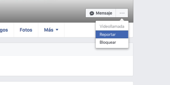 En Facebook hay que ir al perfil del usuario a reportar y hacer clic en el botón de los tres puntos suspensivos.