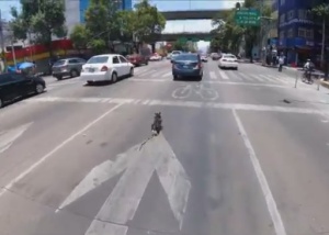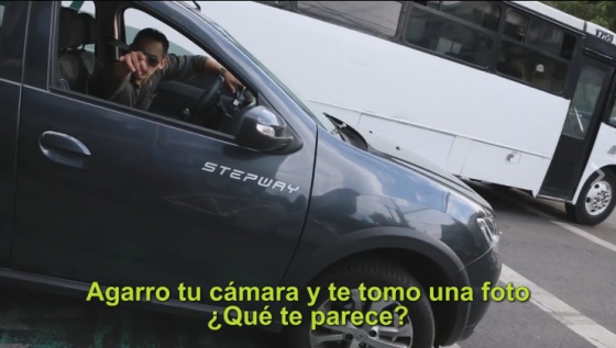 En el registro se observa a un automóvil que espera la luz verde invadiendo el carril exclusivo para las bicicletas y el trolebús. Santillán apuntó su cámara hacia el conductor y a continuación hacia sus placas, lo que provocó el conflicto. El automovilista cuestionó que el ciclista tomara una fotografía de su rótulo y este respondió que no podía circular por esa vía. También le dijo que la grabación era parte de su trabajo.