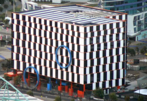 Se trata de una variante de una ilusión óptica clásica, la “café wall” o pared de la cafetería. En esta ilusión las franjas son paralelas, aunque no lo parezca por la disposición de los cuadros y, en la versión clásica, por el contraste entre el blanco y el negro. Todo esto dificulta que se vea bien la línea que separa las filas y hace que cada cuadro parezca más ancho en uno de los extremos. Hay incluso un edificio de Melbourne que juega con este efecto.