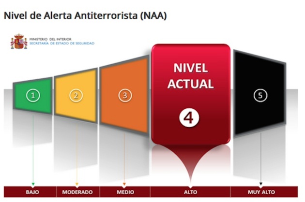 - El nivel de alerta es un asunto público. La forma más fidedigna de conocerlo es el Ministerio del Interior, que lo tiene permanentemente colgado en su web oficial.