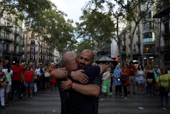 La Rambla, el lugar donde tuvo lugar el atentado de Barcelona, se han llenado durante la última semana de mensajes y gestos espontáneos de solidaridad y empatía tras los atentados: altares y muros de mensajes improvisados, afluencia masiva en la calle... Y también abrazos. El 20 de agosto, un hombre se colocó en esta calle con un cartel con el mensaje "soy musulmán, no soy terrorista, reparto abrazos de amor y paz". Una publicación en Facebook con un vídeo del momento ha superado los 51.000 compartidos en menos de 48 horas.