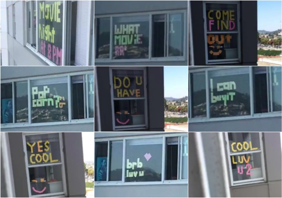 Charlotte Alegado y sus compañeras de piso, estudiantes de la universidad estatal de San Francisco, decidieron ponerse una película para pasar la noche. Tal y como Alegado explica a Verne, “queríamos hacer amigos nuevos, así que pusimos un mensaje con post-its en la ventana que decía: ‘Noche de cine a las 8 pm’. Inesperadamente, nuestros vecinos de enfrente nos contestaron también con post-its y decidimos seguir conversando de esta forma”.