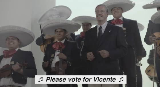 Después de enumerar sus propuestas, Fox presenta un tema musical para su supuesta campaña, a ritmo de mariachi (obviamente). “Por favor, voten por Vicente para presidente, no puede ser peor que Donald Trump”, cantan los mariachis a todo pulmón en espanglish, mientras el guanajuatense sonríe y mira al horizonte.