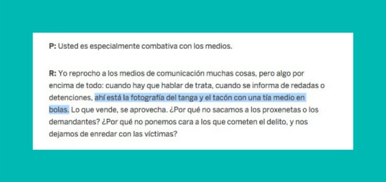 5. Un poco de autocrítica. La Mari Luz que acompañaba a Arturo Fernández no tiene nada que ver con la persona que da esta entrevista, aunque tengan la misma cara. Mabel Lozano hablaba de trata y prostitución en este artículo de El País. No voy a abrir (ahora) el melón del abolicionismo o la regulación. Pero, gracias a una compañera, me llegó este párrafo cargado de razón. Otra lección que deberían enseñar en Periodismo: