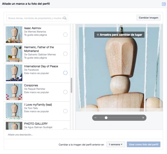 La oferta de Facebook no solo tiene en cuenta los marcos populares, sino también los creados por páginas a las que seguimos o los que han usado nuestros amigos. Y el cambio puede ser temporal: es decir, se puede pedir que el marco desaparezca automáticamente tras un plazo de tiempo que es personalizable.