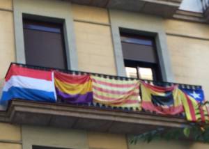 En Cataluña cuelgan banderas de muchos balcones. En su mayor parte, esteladas y señeras, aunque también hay carteles a favor del sí en el referéndum y, en otros casos, banderas españolas. En los últimos días están circulando mensajes en WhatsApp que promueven una campaña similar en el resto de España y que animan a colgar la bandera española del balcón.