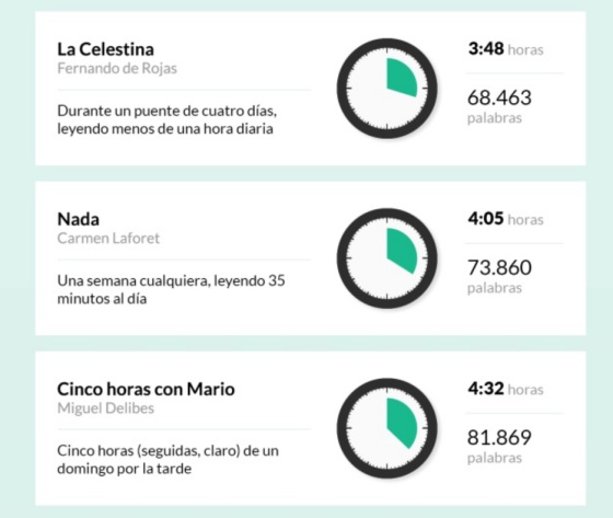 6. Un domingo te da tiempo de sobra para leer algunos clásicos de la literatura española. Te puedes ventilar Luces de Bohemia de Valle-Inclán en una hora. Para terminar Cinco horas con Mario de Miguel Delibes necesitas cuatro horas y media. Aquí tienes los cálculos de otros tiempos de lectura de obras imprescindibles.