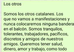 Una semana antes de que se celebrara el referéndum, Albert Pla leyó una carta en RAC1 en la que, con su humor característico, exageraba algunos de los tópicos sobre la Cataluña bilingüe y defendía tanto el diálogo como lo contrario: "Si alguien no está de acuerdo conmigo, ningún problema, yo llamo a la Guardia Civil o al juez". Aunque era puro Albert Pla, muchas personas la tomaron en serio.