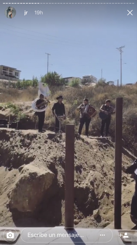 La tarde del domingo, el artista francés compartió imágenes del pícnic en Instagram Stories, donde se observa que de un lado de la frontera la imagen sirvió como mesa y del otro lado como mantel, mientras que la banda de música norteña tocó en ambos lados.
