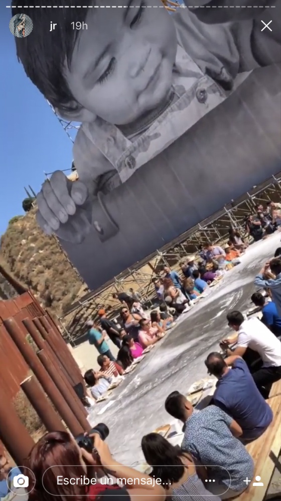 La imagen de la comida celebrada este domingo, capturada con un dron y publicada en la cuenta de Instagram del artista acumula más de 62.000 me gusta en menos de 24 horas. También ha sido compartida más de 1.200 veces en Facebook. “Personas comiendo la misma comida, compartiendo el agua, disfrutando de la misma música (una mitad de la banda en cada lado) alrededor de los ojos de una dreamer... olvidamos el muro por un minuto”, dice JR en la imagen.