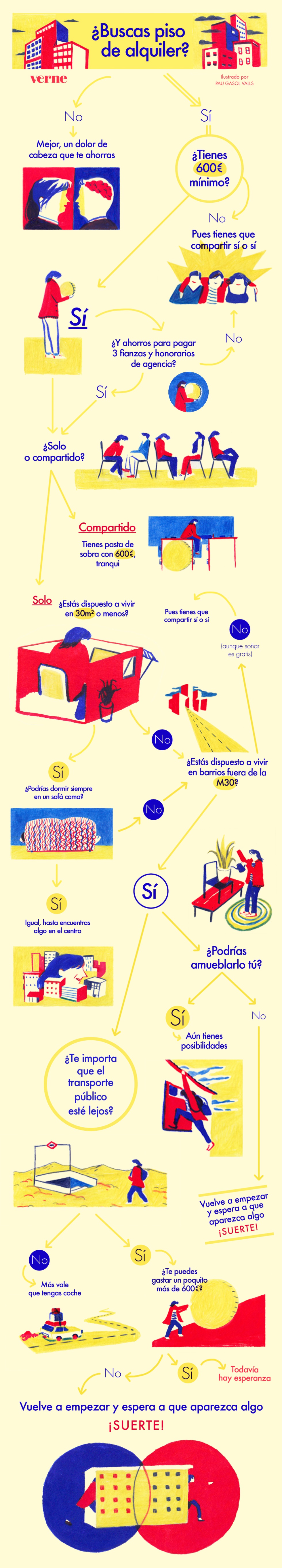 Durante estas semanas en 'Coqueto, mejor ver' te estamos contando de primera mano lo complicado que es conseguir un piso de alquiler en Madrid. Laura Sánchez, su protagonista, lleva meses intentándolo sin éxito y contándolo a través del blog. Esta es una pequeña guía para que, si estás en su misma situación, sepas qué es lo que te espera y las decisiones que tendrás que tomar. Si quieres compartir tu experiencia con Laura, escríbele a mejorver@verne.es o a Twitter @mejorver. ¡Suerte!