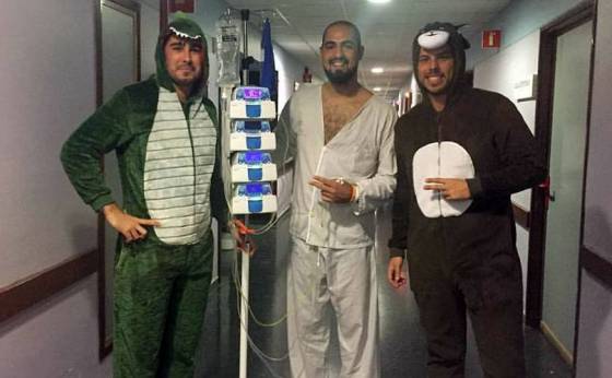 "Van mis amigos y, para animarme, se plantan en el hospital con esas pintas. Son pijamas de estos del Primark", dice entre risas. Subió la foto a Facebook, donde lleva más de 640 interacciones, muchas más de las habituales, y a Instagram. Desde entonces, sus imágenes y vídeos en esta red social acumulan mucha más actividad. "Entonces pensé que tenía que aprovechar toda esa atención para algo importante. Me centré en pedir a la gente que se apunte al registro de donantes", indica.