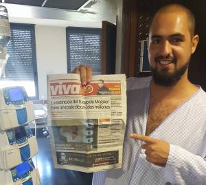 Ese es el principal mensaje que transmite en la entrevista que terminó de lanzarle a la fama en Huelva. El diario local Viva Huelva le entrevistó y colocó su foto en portada, posando como lo hacía Pablo Ráez: flexionando el brazo (💪). "A partir de entonces me empezaron a llamar de muchísimos medios locales. Aproveché toda esa ola para insistir en la importancia de que la gente se apunte para donar. Quería conseguir algo grande", añade.