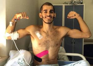 Nos atiende por teléfono con una alegría que impresiona. "Estas cosas hay que afrontarlas con la mejor actitud posible", dice. Es la tercera vez que diagnostican leucemia a este onubense de 26 años. La primera vez fue con 17 y recayó con 23. Le ingresaron el 6 de noviembre, cuando se hizo esta foto.